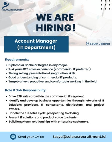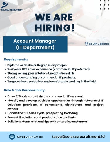 PT. Talenta Selaras Utama is a trusted recruitment partner, committed to connecting organizations with exceptional talent that drives sustainable growth.